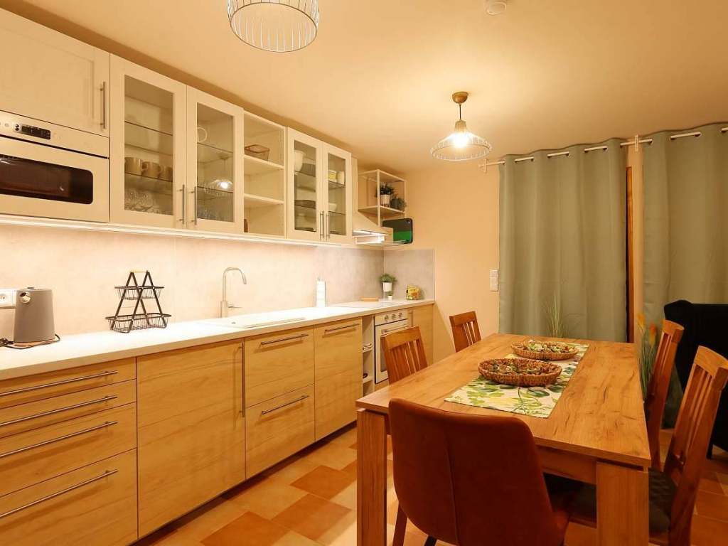 V každé kuchyni je mikrovlnná trouba, horkovzdušná trouba, indukční varná deska, digestoř, rychlovarná konvice, lednice s jednou mrazničkou, prostorný jídelní stůl. Veškeré kuchyňské náčiní a nádobí.