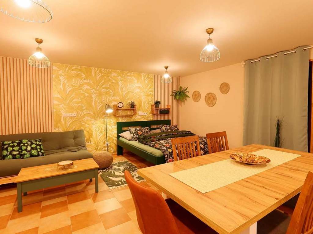 Každý Apartmán disponuje plně vybavenou kuchyní pro náročné vaření, velkým jídelním stolem a obývací částí s pohodlnou rozkládací pohovkou, křeslem a TV s prémiovými programy.