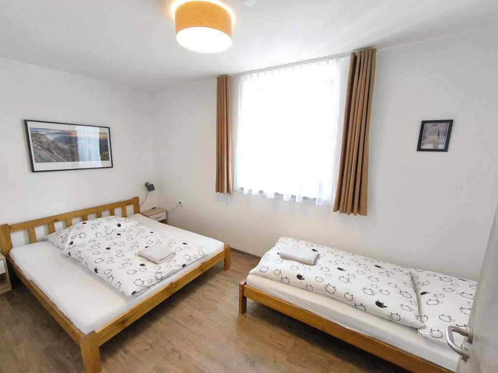 Apartmán A2: 1.ložnice 1x manželská postel 180x200 cm a 2x jednolůžko. 2.ložnice 1x manželská postel 160x200 cm a 1x jednolůžko.
