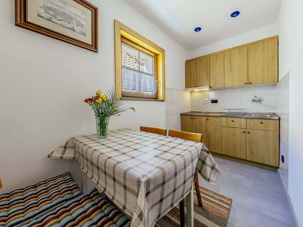 Apartmán K je vhodný pre 3 až 6 osôb, nachádzajú sa v ňom 3 spálne s dvojlôžkom. Každá z troch spální má samostatnú kúpelňu. K dipozície je plne vybavená kuchyňa. V letných mesiacoch hostia radi využívajú stolík a lavičky pred apartmánom na posedenie.