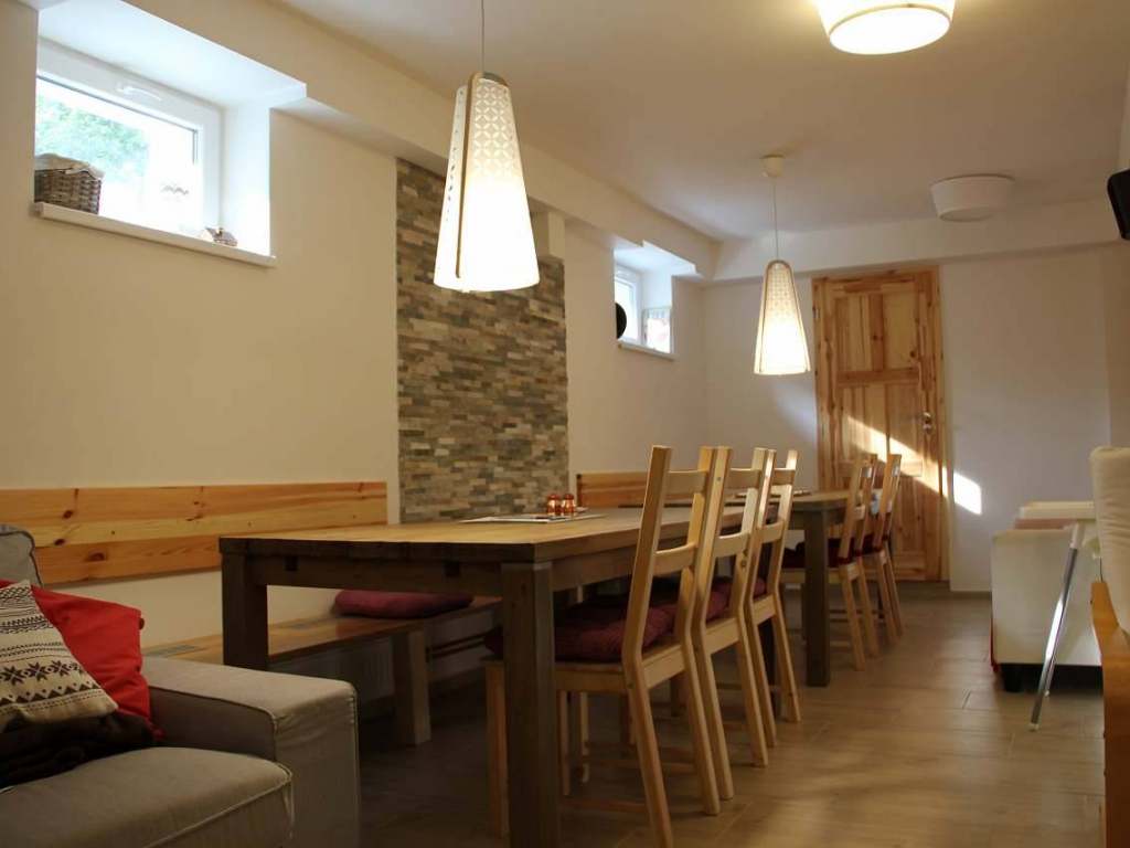 V suterénu je k dispozici prostorná společenská místnost a lyžárna. Posezení a dětské hřiště na zahradě.