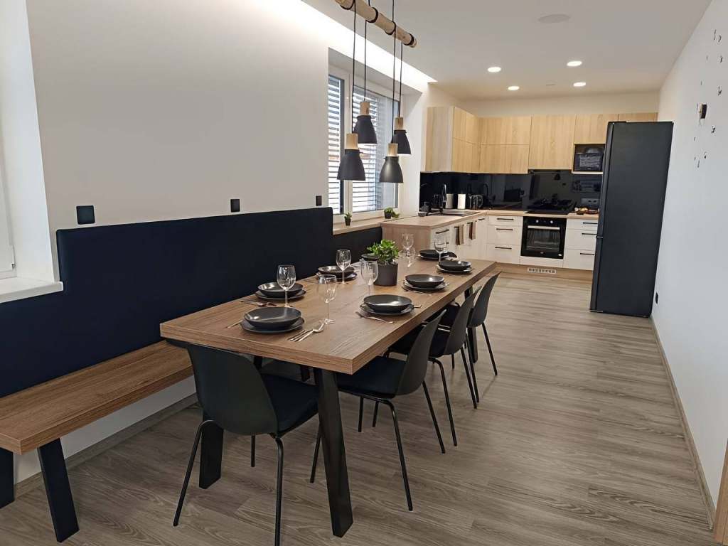 Náš apartmán na Luční se nachází v srdci města Bystřice nad Pernštejnem, přímo naproti restaurace, tři minuty chůze od sportovní haly s krytým bazénem, lezeckou stěnou a venkovním vyhřívaným koupalištěm. Vzdálenost k nejbližšímu obchodu s potravinami je 300m. V okolí Bystřice nad Pernštejnem je možné v letní sezóně využívat mnoho pěších tras, cyklotras či cyklostezek pro kolečkové brusle. V zimní sezóně se v jejím okolí nachází množství lyžařských vleků či běžkařských tratí. Dům je sice z roku 1940,avšak postupně prochází rozsáhlou rekonstrukcí včetně vybavení moderními technologiemi - apartmán je řízen inteligentní elektroinstalací Loxone, o výměnu vzduchu se stará rekuperace, hostům je k dispozici wallbox pro dobíjení elektromobilů, jehož elektrická energie pochází z fotovoltaické elektrárny umístěné na střeše domu. Postupně probíhají úpravy i v okolí domu. Pro sezónu 2026 bude zprovozněno dětské hřiště a venkovní ohniště s posezením.