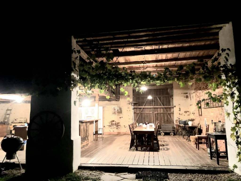 Venkovní kuchyň, posezení, gril, výčepní zařízení, barový pult, trouba, varná deska, spousta starožitného porcelánu.
