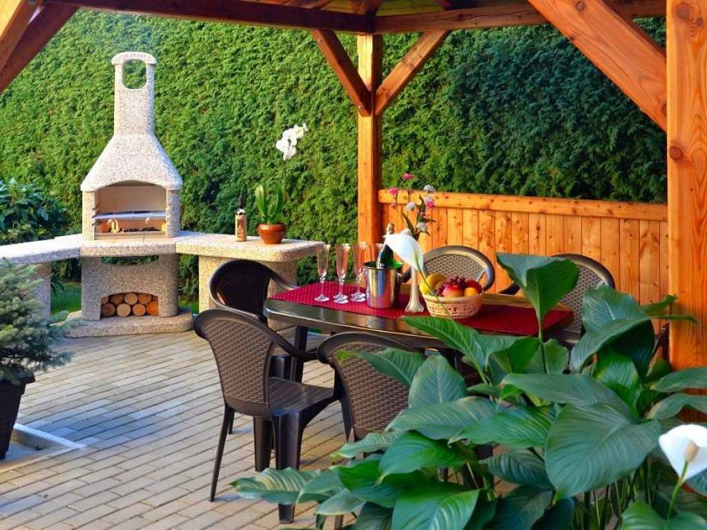 Apartmány jsou vybaveny el. sporákem s troubou, lednicí s mrazákem, kompletním nádobím (hrnce, talíře, příbory, sklenice, hrníčky atd. ) mikrovlnou troubou, varnou konvicí, LED TV úhl. 109 cm, satelitem a WIFI internetem. Na zahradě je k dispozici vyhřívaný bazén, dva altánky + 1 nezastřešené zahradní posezení, 3 krby s grily, houpačka, uzamykatelná místnost na uschování jízdních kol, lyží, kočárků, autoboxů, držáků kol atd.