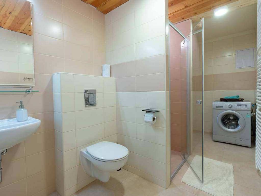 Praní a zázemí: Dovolená s dětmi nebo aktivní turistika se bez pračky neobejde. Apartmány 1 a 4 disponují vlastní automatickou pračkou přímo v koupelně. Pro ostatní hosty je k dispozici sdílená pračka v naší společenské místnosti.