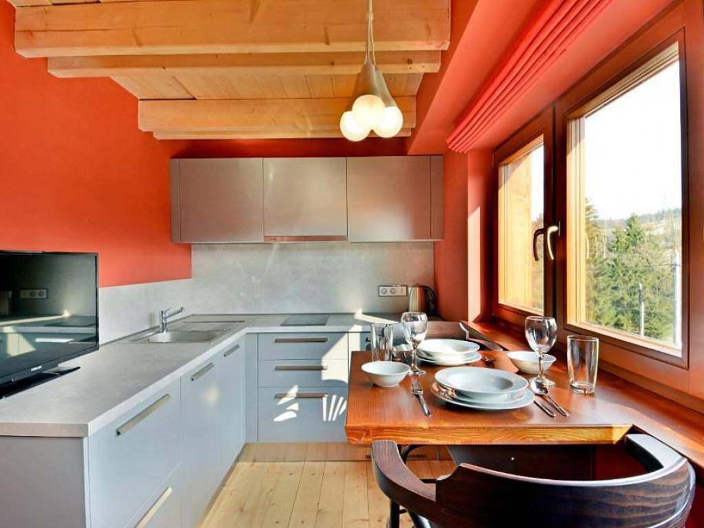 Všechny apartmány mají plnohodnotně vybavené kuchyně s myčkou, varnou konvicí i mikrovlnnou troubou, dvou - plotýnkou s digestoří a lednicí. Apartmány také nabízí jídelní stůl a TV. Wi - Fi.
