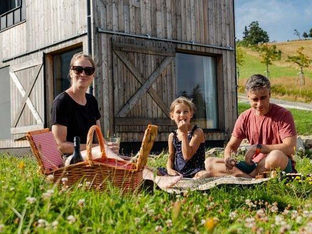 Každý apartmán má vlastní travnatou terasu s výhledem na panorama Jeseníků, ohniště s grilem, dětské pískoviště a houpadlo. Pod apartmány vede flow trail pro terénní koloběžky, bikery a děti. Cca 150m je vzdálený rybník Úžas, v ledním období s možností koupání, paddleboardingu a občerstvení.