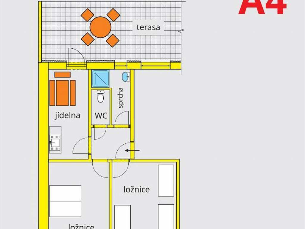 - 3 apartmány 5-lůžkové, 2 ložnice