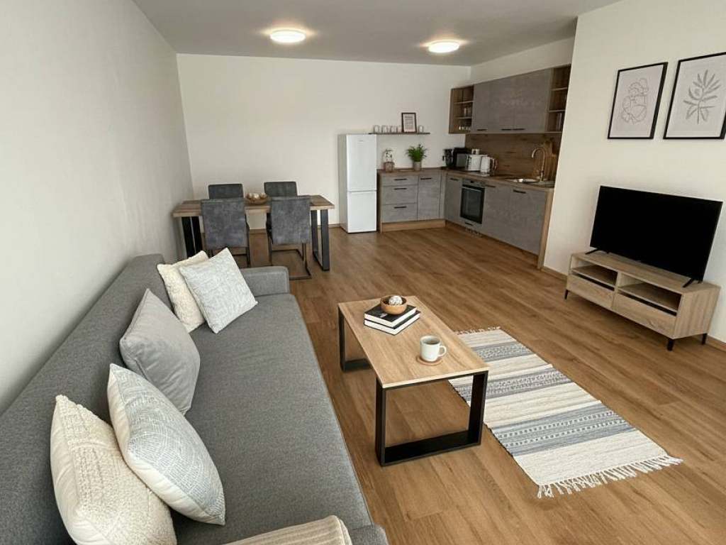 2.Apartmán GRAND (Větší, ideální pro 4 - 6 osob): Prostorný apartmán pro rodinu. Disponuje velkým obývacím prostorem, moderní kuchyní s jídelním stolem a dvěma oddělenými ložnicemi, které zaručují soukromí.