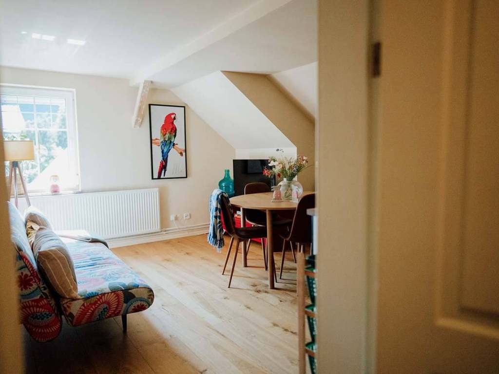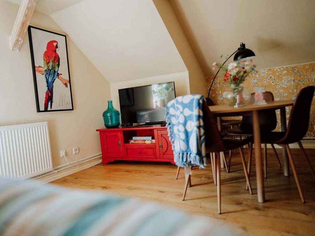 2 apartmány v jednom patře domu, každý má jiný styl a své jméno :-), Větší apartmán Sunrise, situovaný na východ s výhledem do zahrady, pro maximálně 6 osob má 4 místnosti (3 ložnice a kuchyň, TV, koupelnu). Menší apartmán Sunset je pro max. 5 osob má 3 místnosti (2 ložnice, obývací prostor s TV a pohodlnou pohovkou pro 1 osobu a kuchyňský kout), je situovaný na západ.
