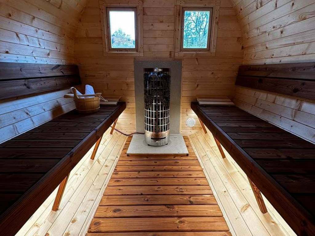 Dále Vám můžeme nabídnout: zahradu s venkovním a zastřešeným bazén se slanou vodou (6x3 m), finská sauna, posezení, venkovní, gril, dětské hřiště na zahradě.