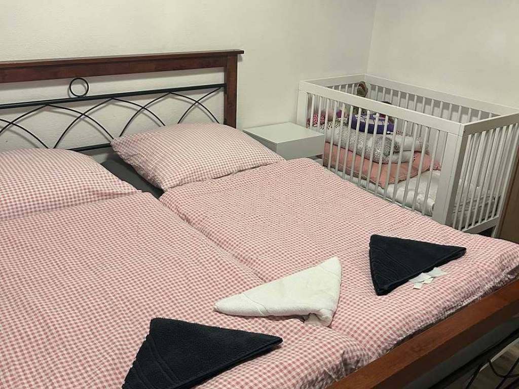 1.ložnice - manželská postel pro 2 osoby a dětská postýlka a dětská postel.