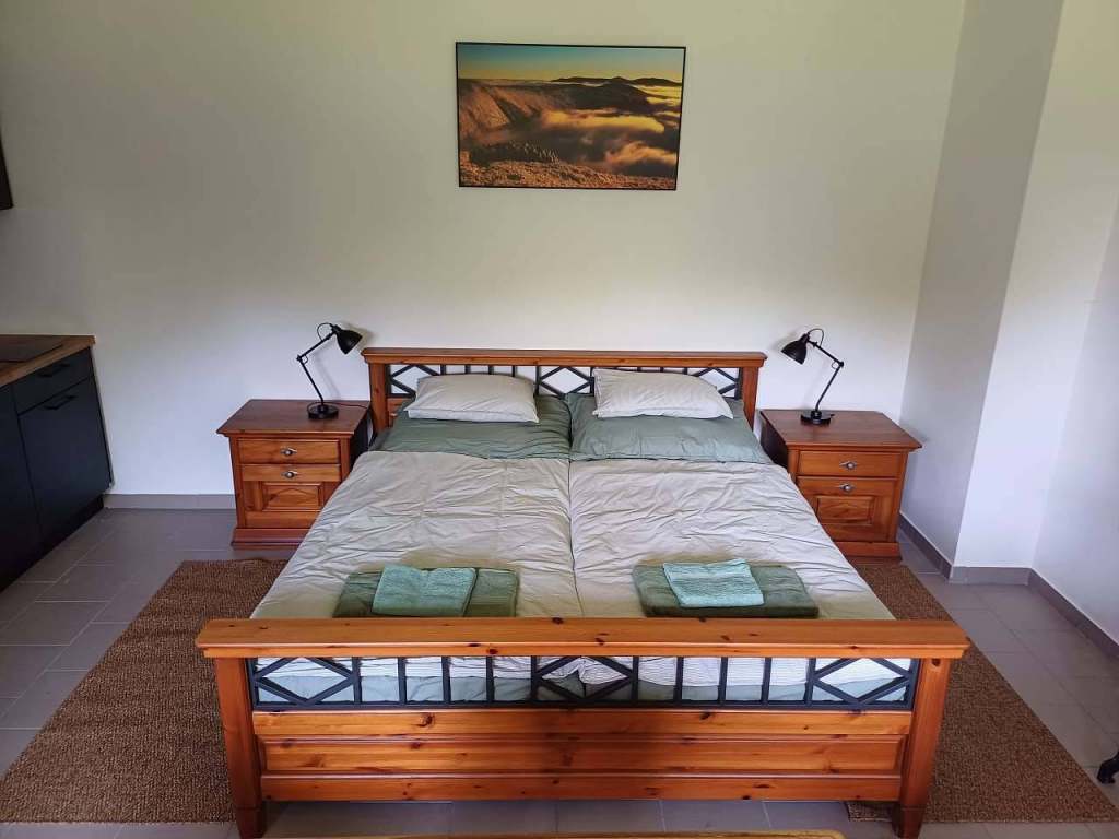 Pro hosty máme k dispozici 2 plně vybavené apartmány - v přízemí menší a ve zvýšeném přízemí opravdu velký apartmán 120m², každý s vlastním vchodem a kuchyní.