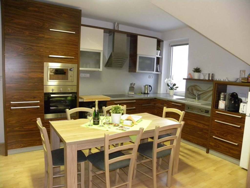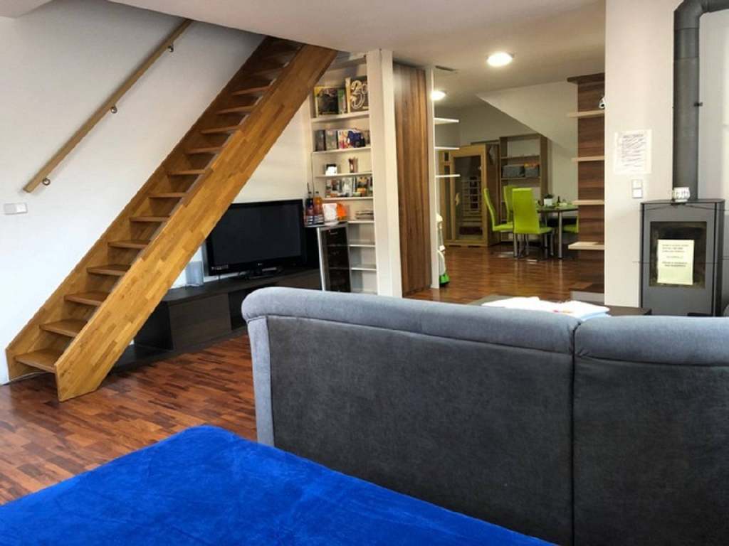 Apartmán II. - Ořechový apartmán s infrasaunou Zdarma - umístěn v prvním patře a v podkroví domu se samostatným vstupem ze společné chodby domu. Velikost apartmánu je 100m². Skládá se z jednoho pokoje v podkroví, kde je umístěná ložnice pro 2 - 4 osoby s manželskou postelí a 2 samostatnými válendami. Dále je v apartmánu v prvním patře jedno samostatné sociální zařízení, v prvním patře je plně vybavená exkluzivní kuchyňská linka, která je spojená s jídelnou se stolem a židlemi a obytným obyvákem s LCD TV, minibarem a krbovými kamny, kde je možnost spaní dalších dvou osob na manželské posteli o velikosti 140x200cm případně je možnost doplnění přistýlky.