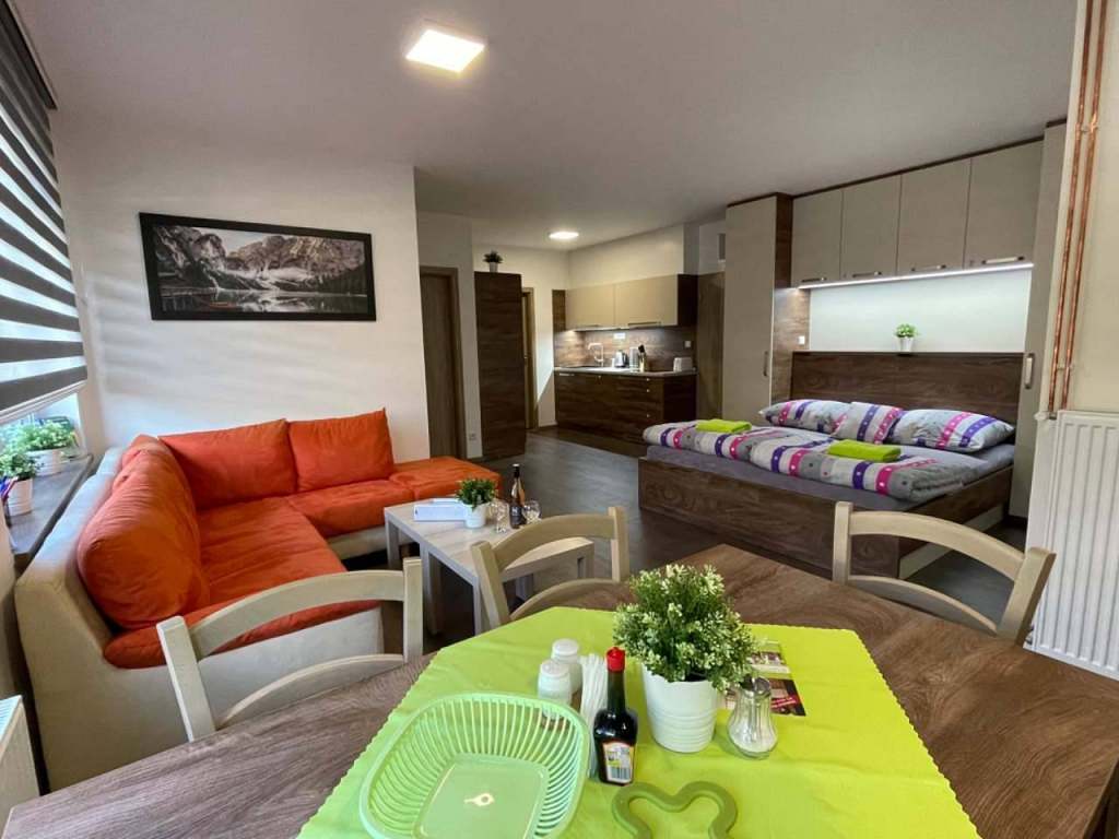 K dispozici je klientům společná venkovní terasa krbem s grilem, ruské kuželky, a dále společenské hry, soft tenis, šipky. WiFi připojení k internetu zdarma. Parkování přímo u objektu. Součástí každého apartmánu je plně vybavená kuchyňská linka (trouba, sklokeramická deska, myčka, lednice s mražákem, mikrovlnka, varná konvice, automatické espresso, topinkovač, veškeré potřebné nádobí).
