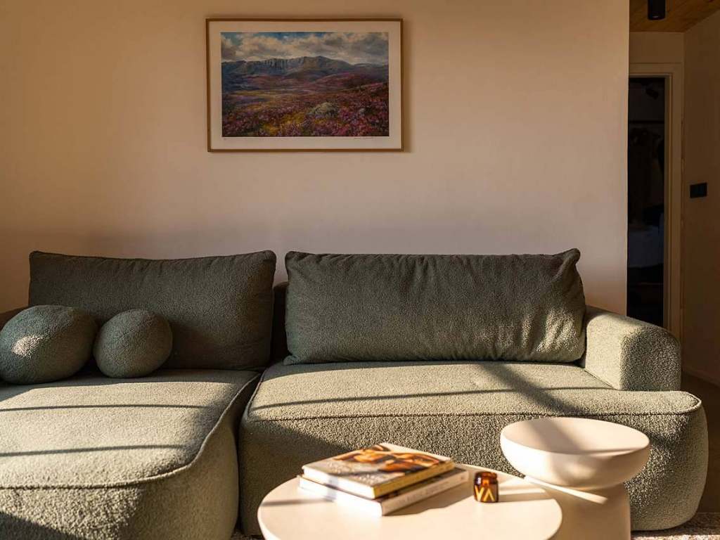 Chalupu si můžete pronajmout celou nebo si zvolit jeden ze dvou apartmánů. Každý nabízí dvě ložnice, plně vybavenou kuchyň s obývacím prostorem a dolní apartmán vás navíc okouzlí velkým oknem s výhledem do přírody. V horním patře si zase přijdou na své rodiny s dětmi díky podkrovnímu hracímu prostoru a dětským knihám.