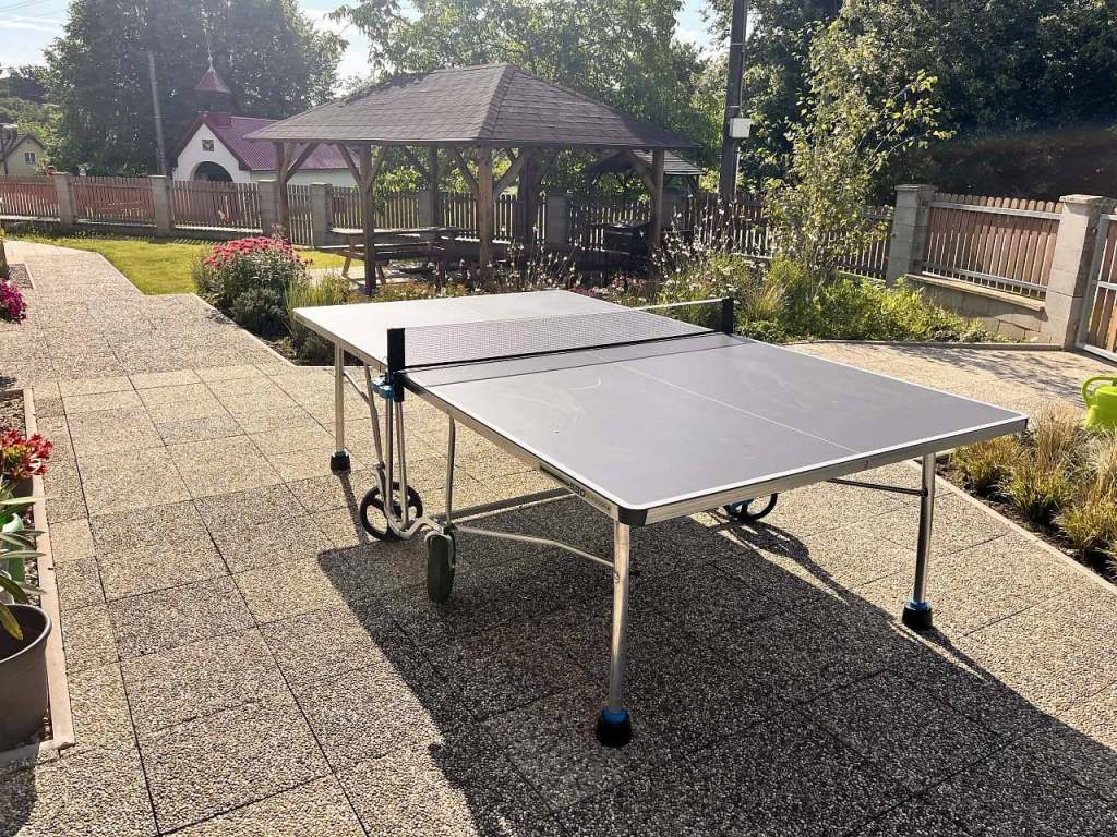 Nově je v zahradě pingpongový stůl.