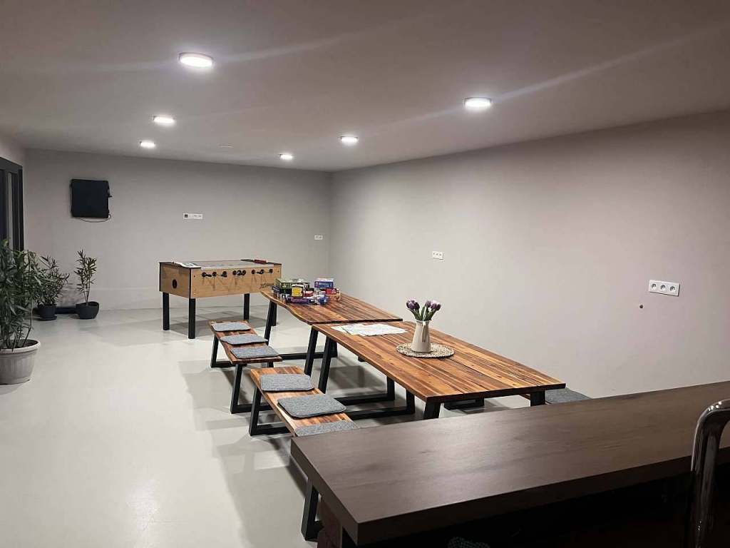 Společenská místnost - šipky, stolní fotbal, automatický kávovar, pípa