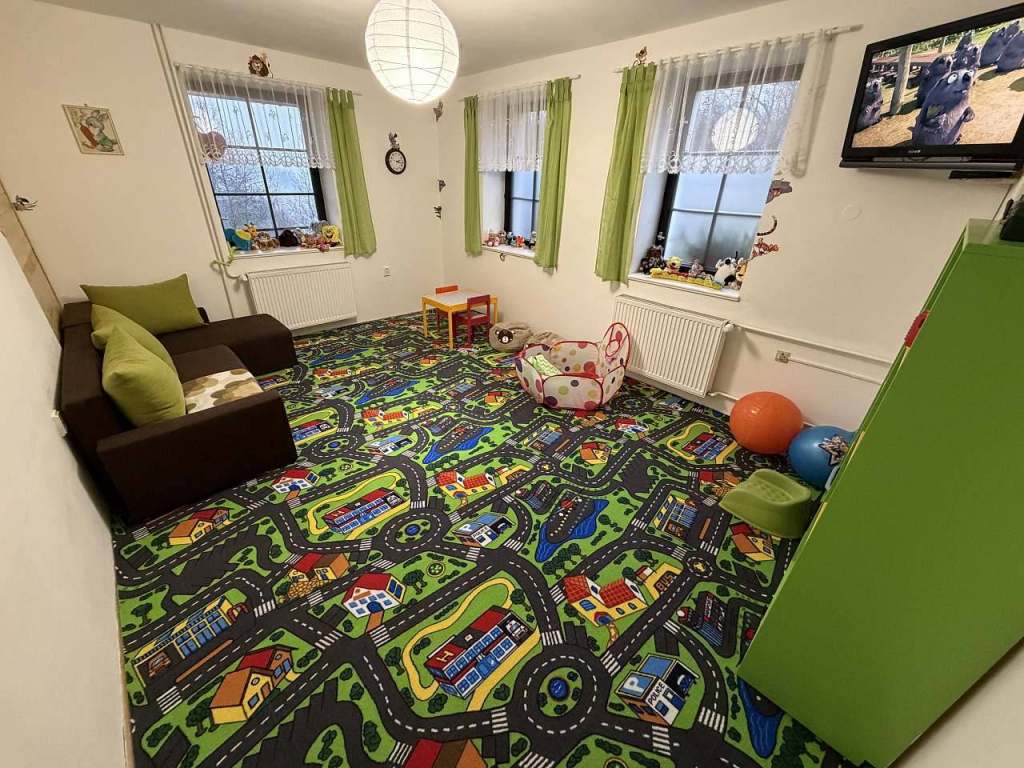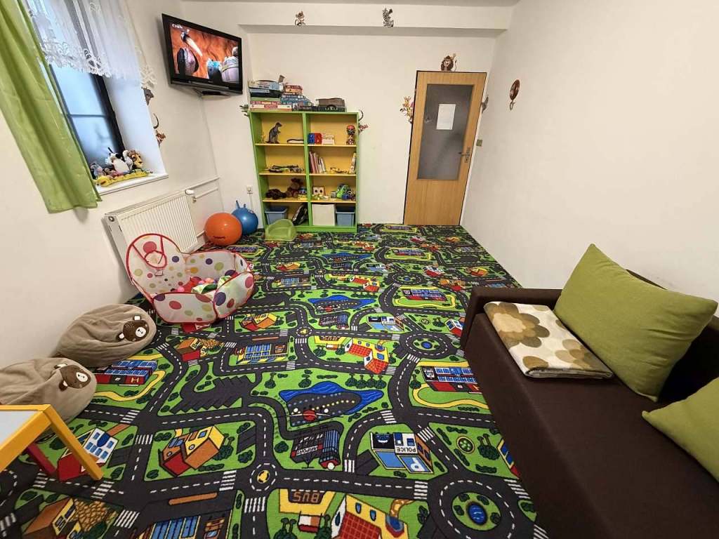 - Pro děti: pískoviště, trampolína, houpačka, k dispozici dětská postýlka