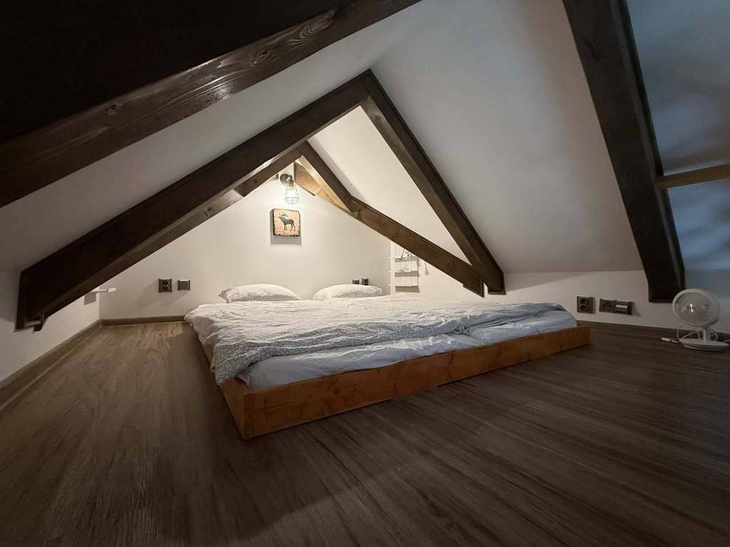 V apartmánu jsou dvě dvojlůžka, jedno v obývacím pokoji a druhé, které si určitě zamilují hlavně děti, se nachází na galerii.