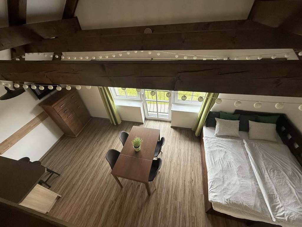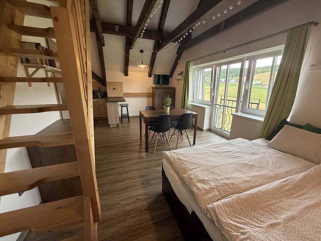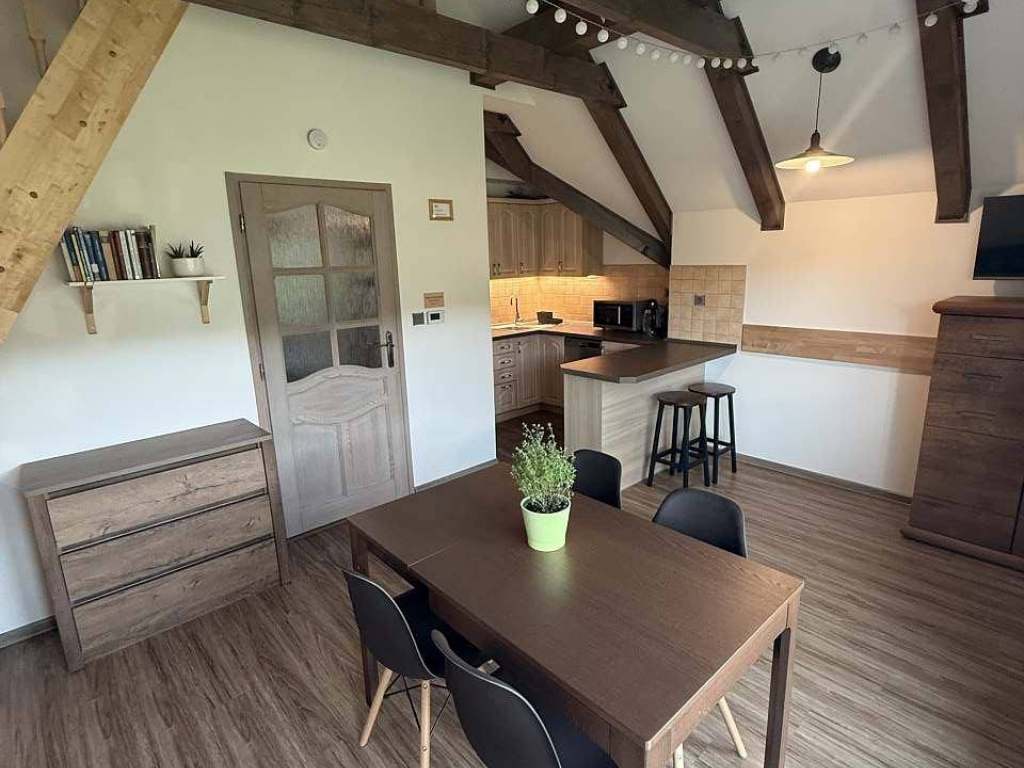 Nabízíme vám ubytování v krásném moderním apartmánu č. 08 v chalupě Barborka s užitnou plochou 44 metrů čtverečních, s galerií v patře a s nádherným výhledem do okolní krajiny, na který se můžete dívat přímo od stolu.