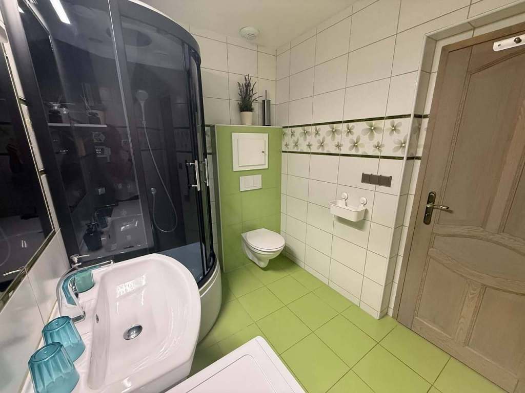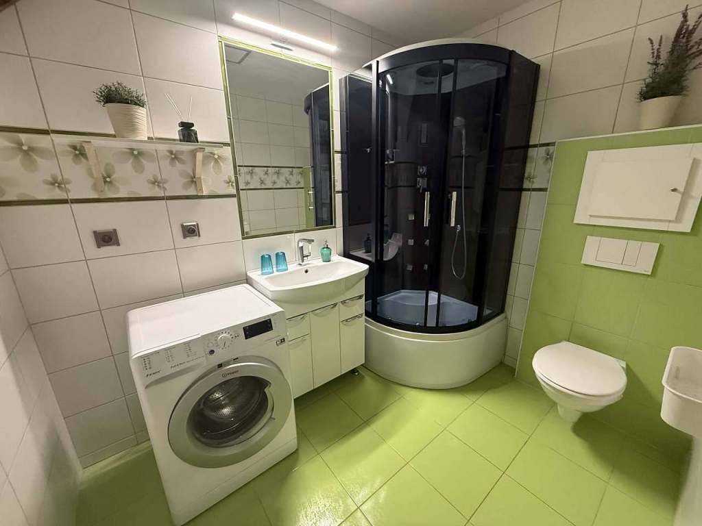 - Sociální zařízení: sprchový kout, pračka