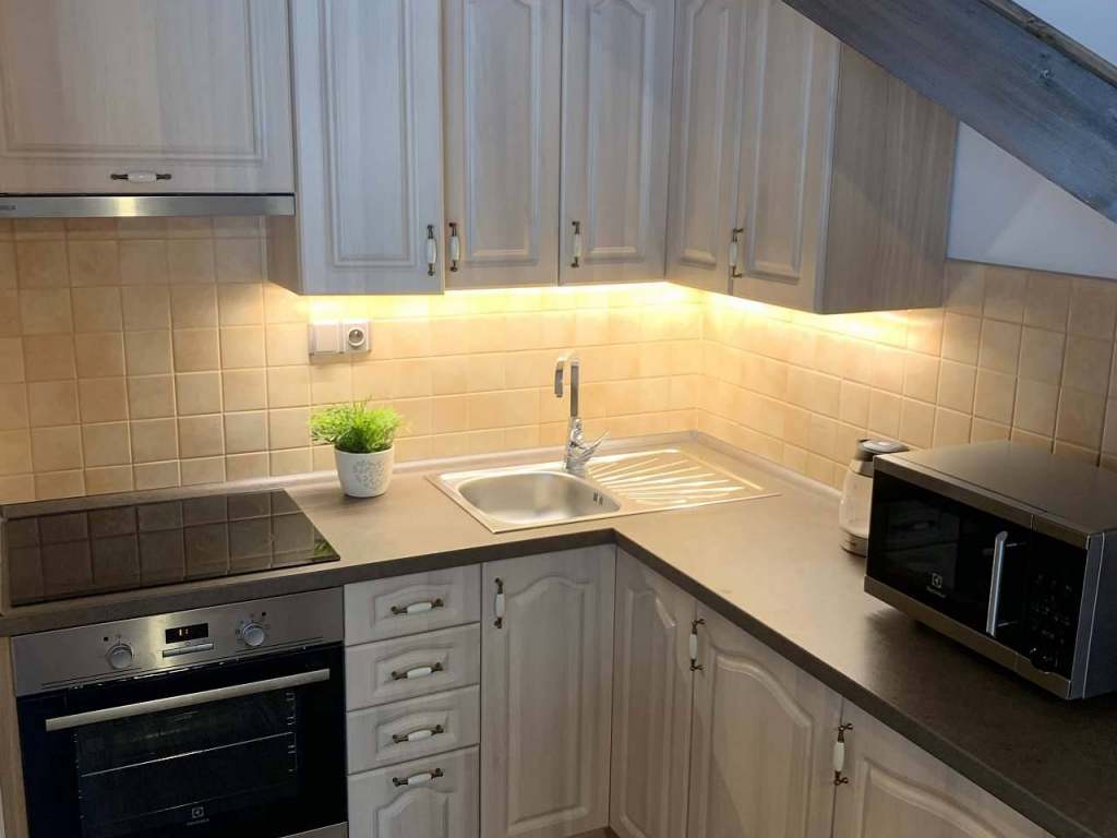 K dispozici je plně vybavená kuchyň s lednicí a mrazákem, myčkou nádobí, elektrickým sporákem a mikrovlnnou troubou, rychlovarnou konvicí s regulací teploty. Kromě servírovacího a kuchyňského nádobí, zde naleznete sůl, pepř, cukr a černý čaj.