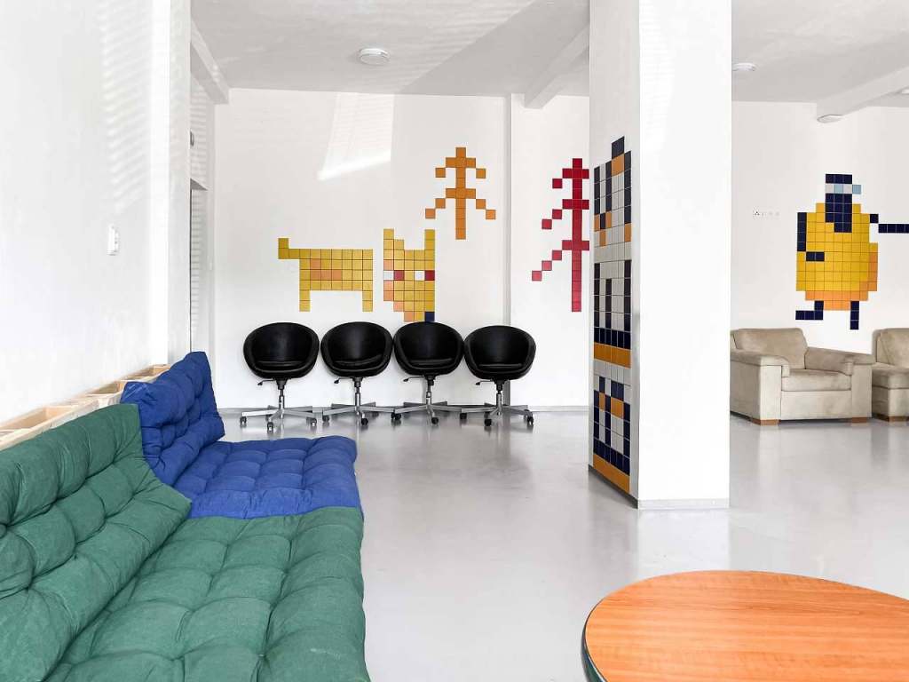 Společenská místnost, sdílené koupelny, WC a kuchyně.