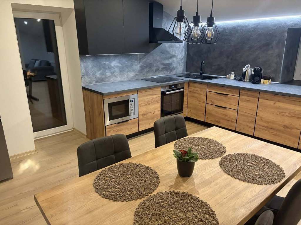 Kuchyně: Kompletně vybavená pro vlastní vaření. K dispozici je myčka nádobí, horkovzdušná trouba, varná deska, mikrovlnná trouba, lednice s mrazákem, rychlovarná konvice a kapslový kávovar. Součástí je jídelní kout.