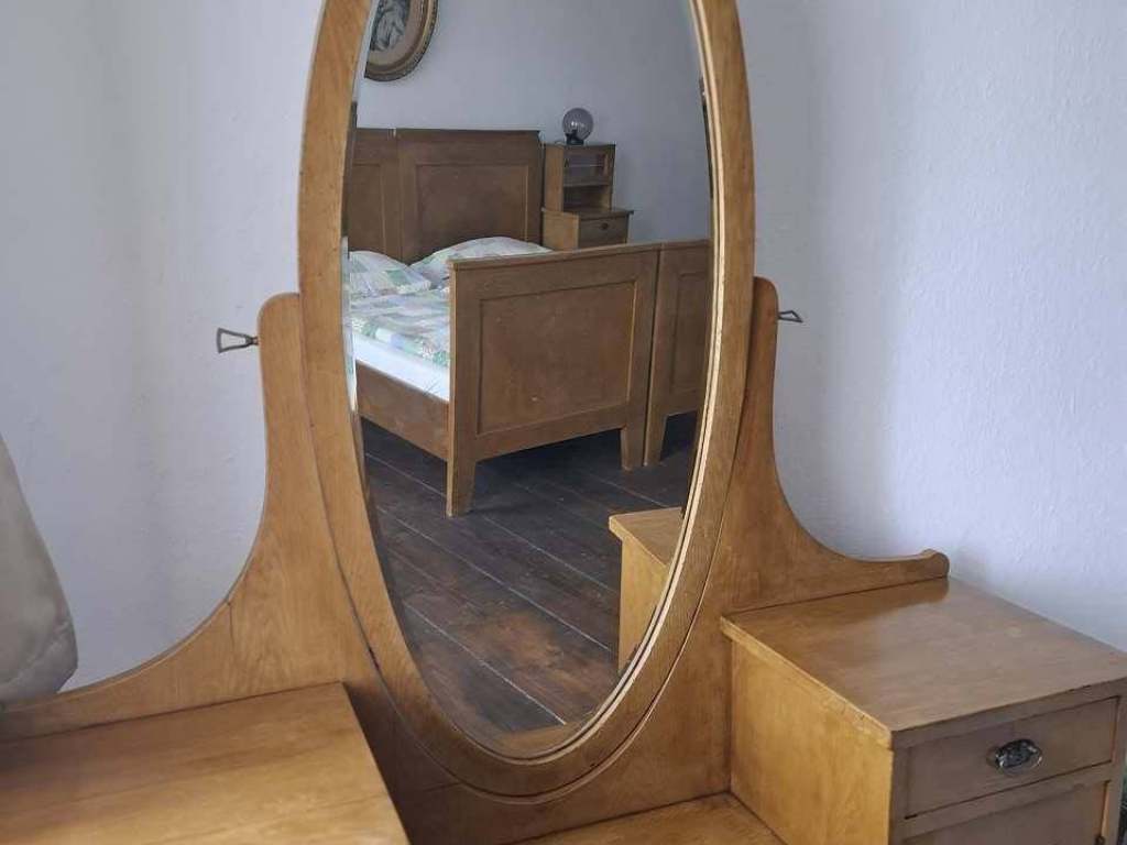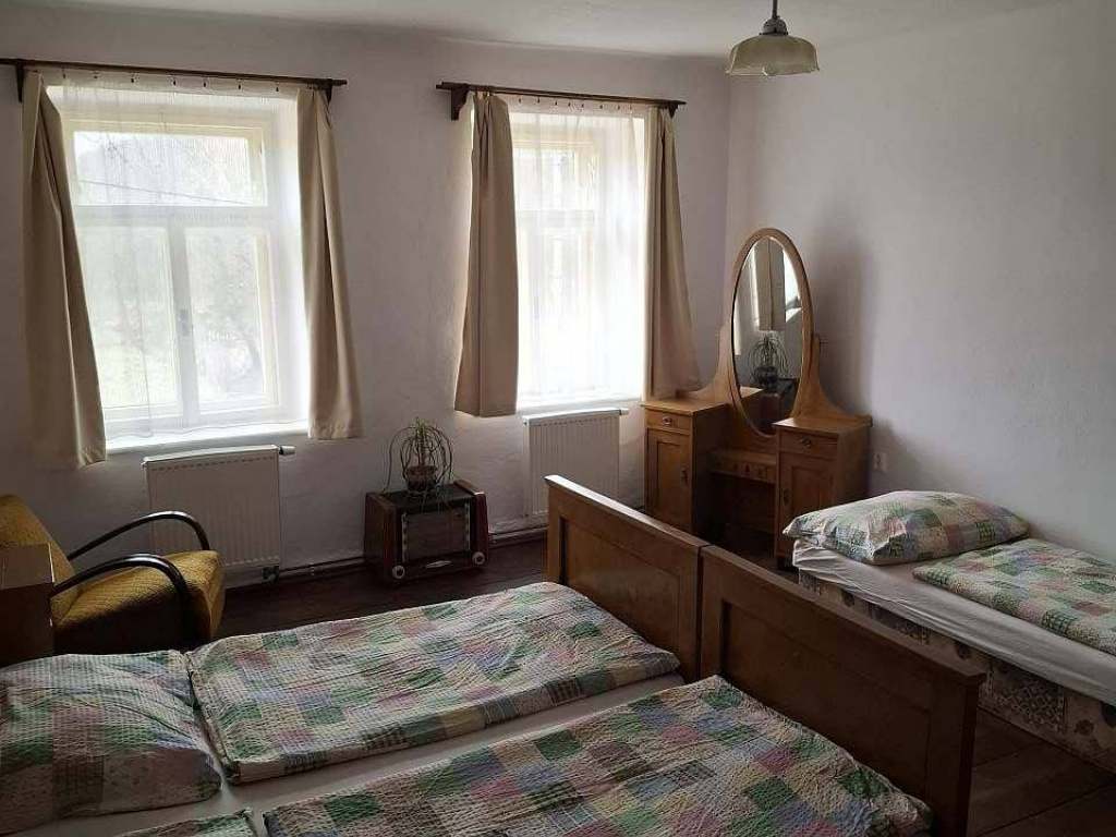 LOŽNICE je zařízena ve starém stylu... manželská postel, noční stolky, skříň, toaletní stolek, dvě válendy.