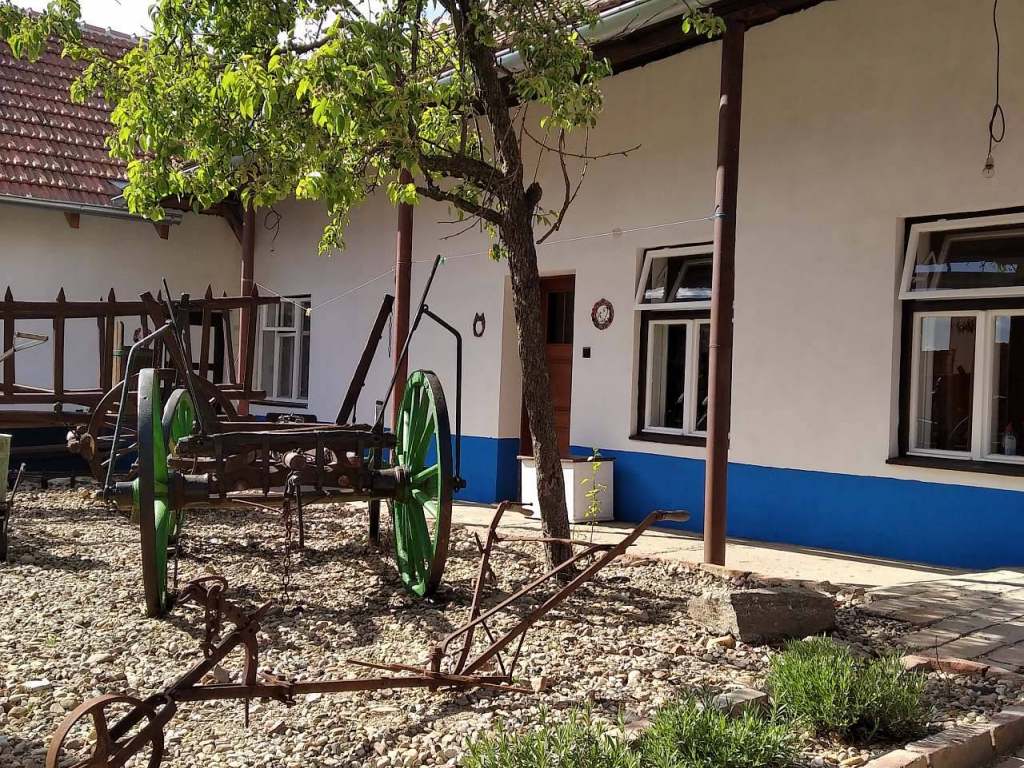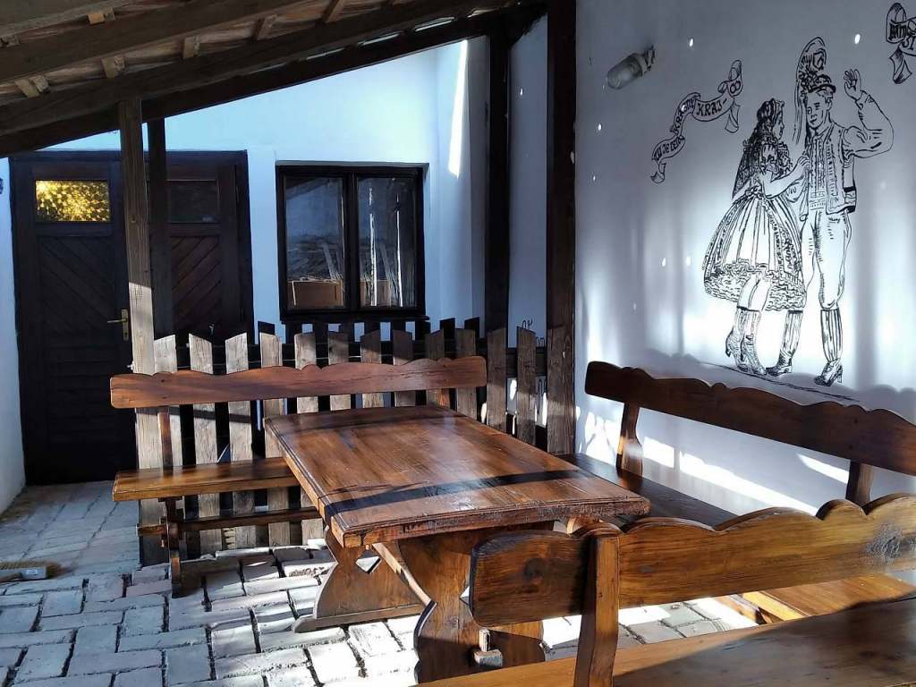 Posezení ve vinném sklípku, místnost s posezením nad vinným sklepem, krytá pergola s posezením a grilem. Uzavřený dvůr. Pro děti pískoviště a houpačka. Kolárna v průjezdu.