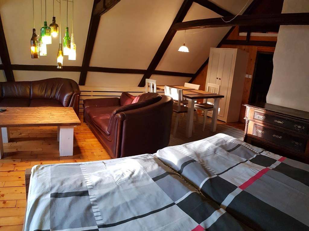 Můžete k nám s pejskem. Ubytování jsou 3 samostatné 4lůžkové pokoje, 2x v prvním patře, jedna koupelna a 1xWC. V přízemí jsou k dispozici pokoj kuchyň a obývák, koupelna, Wc. Sauna. Dětský koutek a posilovna/stolní tenis. Venkovní posezení i ohniště jsou samozřejmostí. Uložení lyží a kol je samozřejmostí.