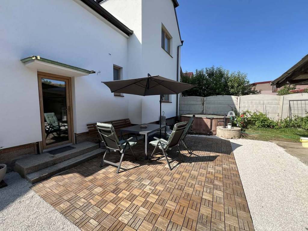 - venkovní posezení se slunečníkem, vodovodní kohoutek na dvoře