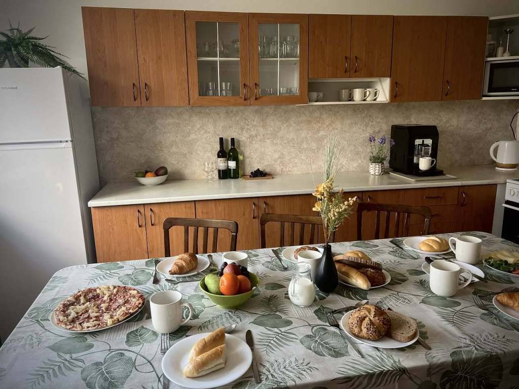 V apartmánu je plně vybavená kuchyň jak pro vaření tak i pro posezení hostů (velký stůl s židlemi).
