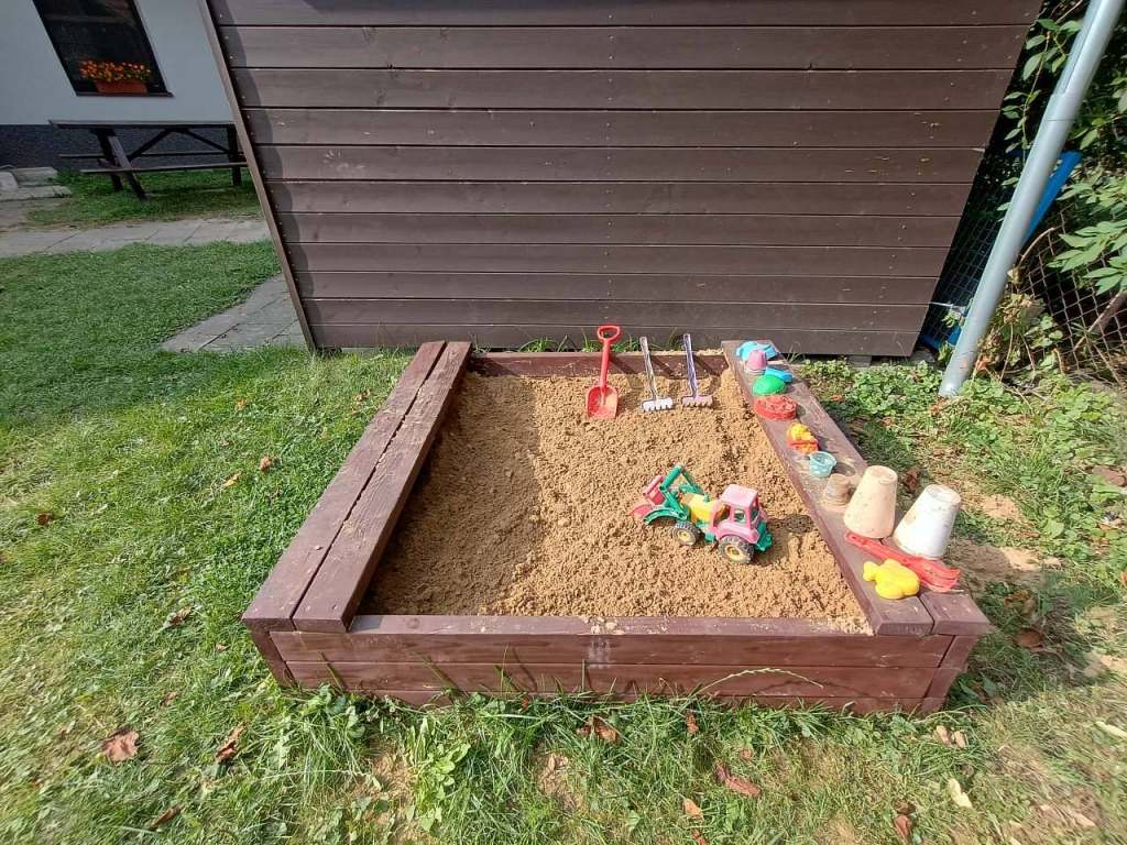 - Pro děti: pískoviště, trampolína, houpačka, k dispozici dětská postýlka