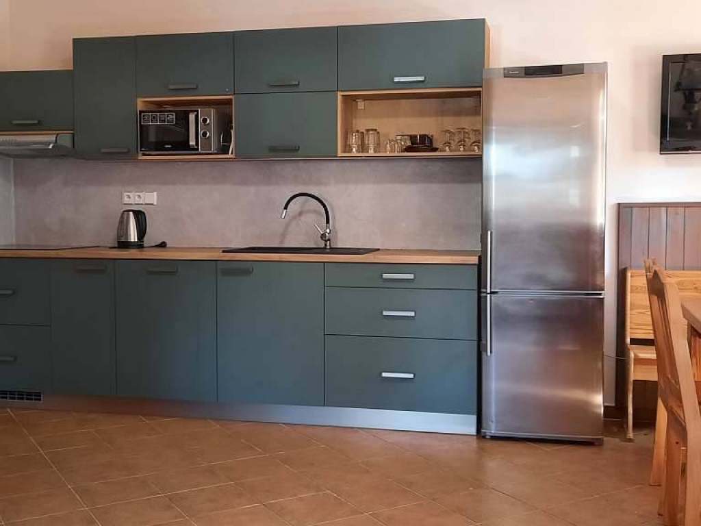 5x plně vybavená kuchyň, společenská místnost pro společné stravování, restaurace 400m. Nabízíme možnost objednání stravy na chalupu z domácí kuchyně - guláš, řízky... dle dohody.
