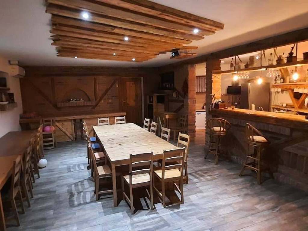 Nabízíme Vám ubytování v 5 komfortních apartmánech + společenskou místnost celkem 32 lůžek (+ 6 přistýlek) bez domácích zvířecích mazlíčků. Všechny apartmány jsou přístupné přes vnitřní chodbu a schodiště, dají se navzájem kombinovat podle požadovaného počtu osob. Apartmány jsou plně vybaveny vč. myčky nádobí, krbových kamen, (kamna nejsou v app. č. 3.a 5.), televizí, wifi, atd. viz popis apartmánů. Chalupa poskytuje od ledna 2021 novou společenskou místnost která je přístupná z chodby a je zvukově oddělená od obytné části. Vybavená je kuchyňská linka s varnou deskou + trouba, myčkou na nádobí a velkou ledničkou to vše za stylovým barovým pultem. Součástí areálu je víceúčelové hřiště na volejbal/nohejbal se sítí, petanque, stolní tenis, ruské kuželky, velký terč na šípky a zastřešená pergola s topeništěm, venkovní ohniště, velký zděný gril (2 x rošt + jehla s motorem na kýtu). Pergola je vybavena kuchyňskou linkou s pitnou vodou a malou ledničkou. Na zahradě je dětský bazén, trampolína, zázemí pro děti s houpačkami, 2 x klouzačka, dětská lezecká stěna, 2 x lanová dráha, kolotoč a pískoviště. Součástí chalupy jsou prostory pro uskladnění lyží nebo kol. Finskou saunu pro cca. 4 osoby se sprchou je nutné si předem před nástupem na pobyt objednat stejně jako koupací sud s vířivkou pro 4 - 6 osob který je nově na chalupě od jara 2024.Parkovat můžete přímo před chalupou. Pro bližší informace o cenách a dalších informacích navštivte náš web: [www. chalupabukovka. cz]