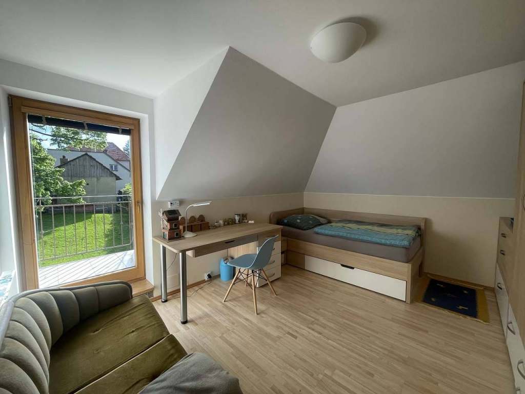 pokoj s rozkládacím gaučem, na kterém se pohodlně vyspí dvě osoby. Na obývací pokoj navazuje ložnice s manželskou postelí a přistýlkou.