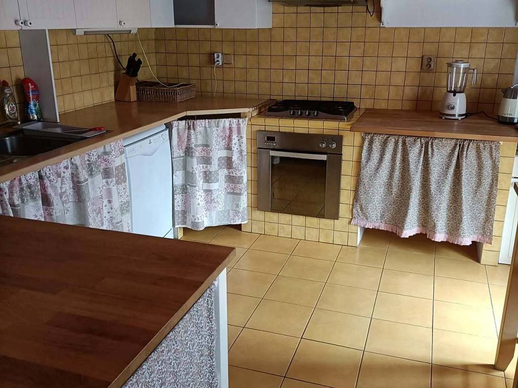 V kuchyni je vše potřebné k vaření, lednice s mrazákem, plynový sporák, varná konvice, pračka, myčka