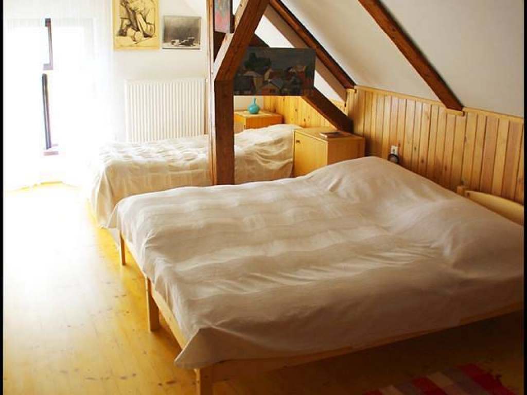 Podkroví: 1 samostatný pokoj se 3 lůžky (1x manželská postel - možno oddělit, 1x jednolůžko)