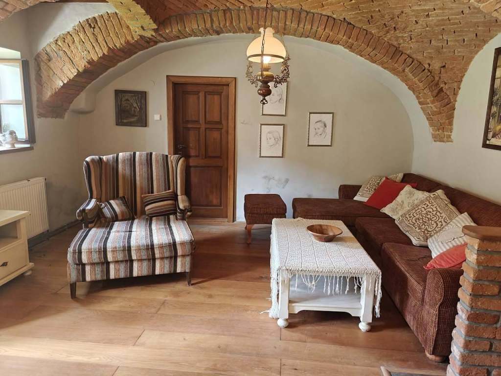 Obývací pokoj, plně vybavená kuchyně s jídelnou a koupelnou s WC umístěnými v přízemí jsou součástí jednotky 5+1.