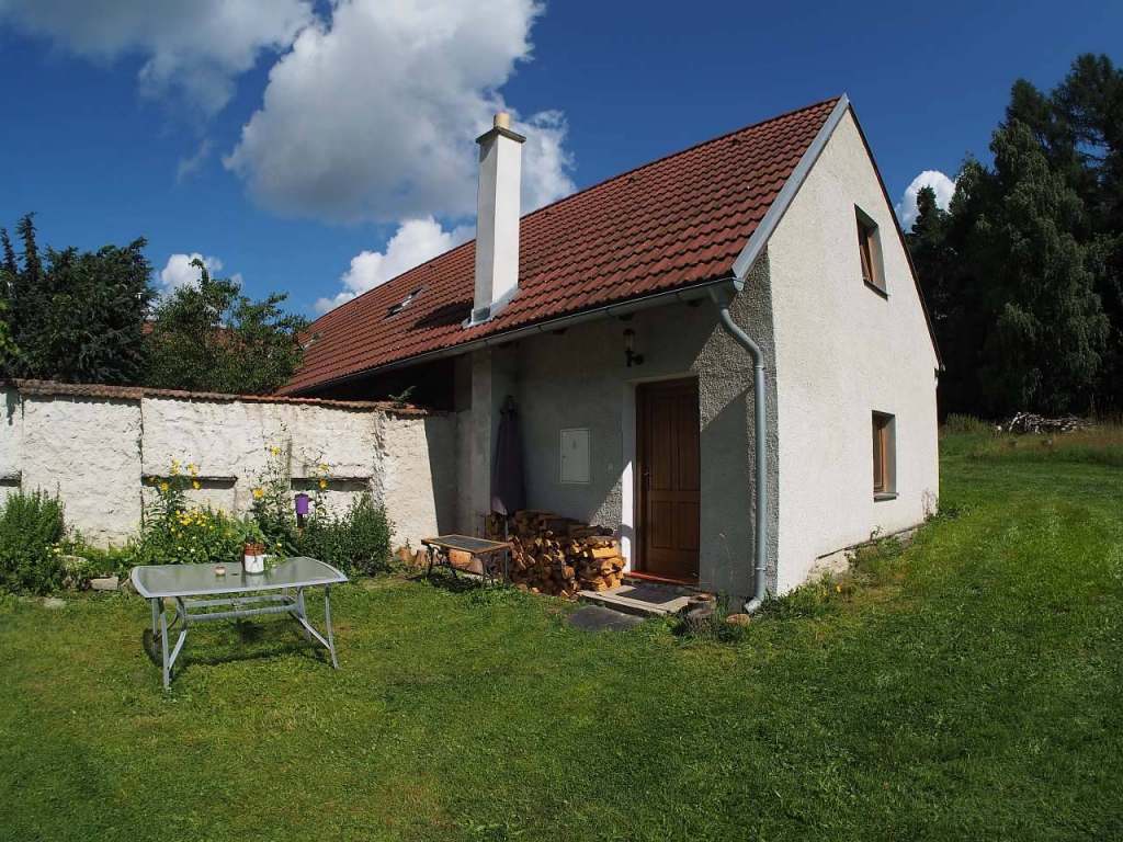 Před chalupou je venkovní sezení s možností grilování (gril Weber) a ohniště.