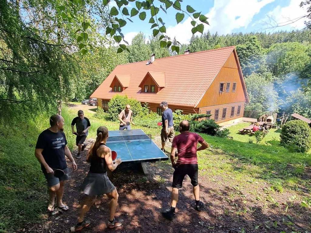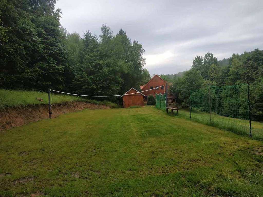 Na pozemku najdete přírodní travnaté hřiště se sítí, hrazdou a slackline. Zahrát si tady můžete volejbal, badminton nebo vybíjenou, anebo uspořádat pingpongový turnaj.
