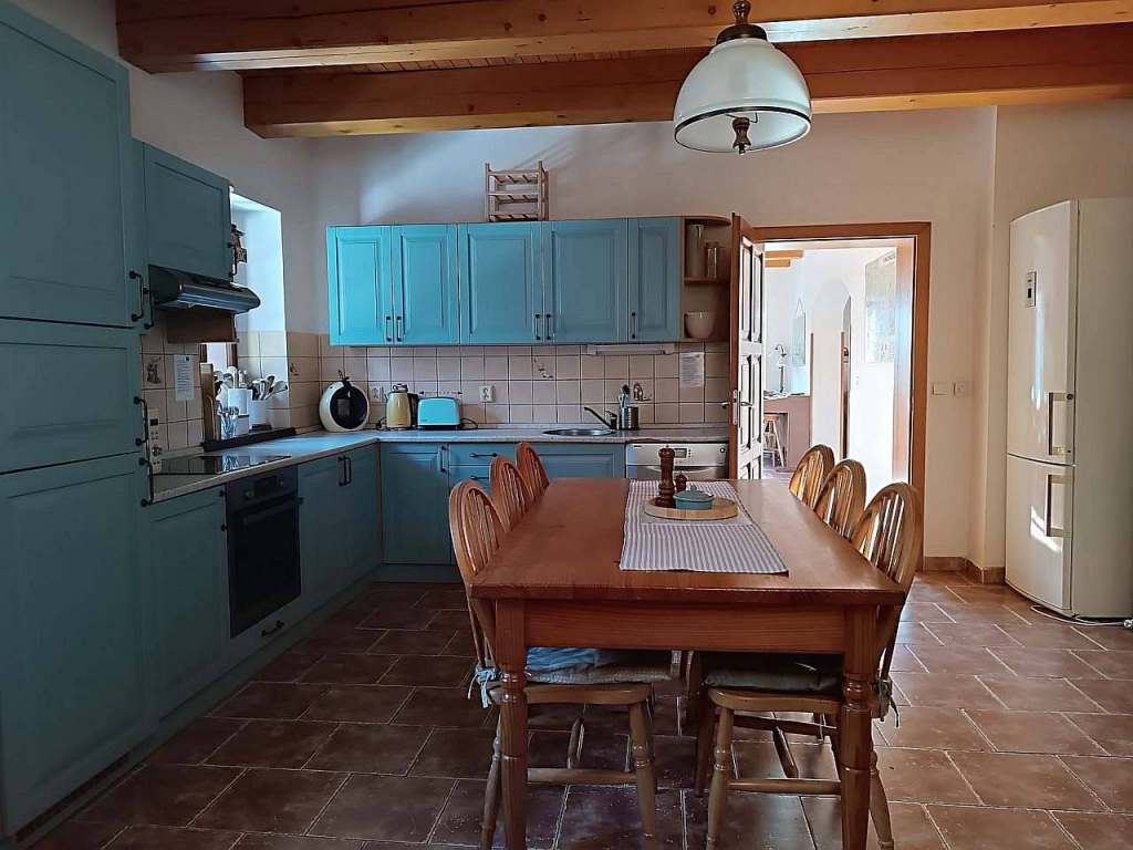Kuchyně v obou částech domu jsou plně vybavené: myčka, lednice s mrazákem, mikrovlnka, elektrická pečící trouba se sporákem, rychlovarná konvice, kávovar dolce gusto a na překapávanou kávu, toastovač, sendvičovač, ruční mixér, šlehací metly a veškeré příslušenství pro přípravu jídla pro větší skupiny osob v obou částech domu.