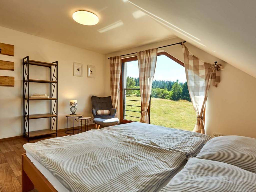 Nová chalupa v překrásné lokalitě přímo pod Plešivcem. Chalupa se skládá z celkem dvou propojitelných apartmánů. Je tedy možné si pronajmout celý objekt s kapacitou pro až 12 osob, anebo jeden ze dvou samostatných apartmánů s kapacitou 4 (malý apartmán) nebo 8 osob (velký apartmán).