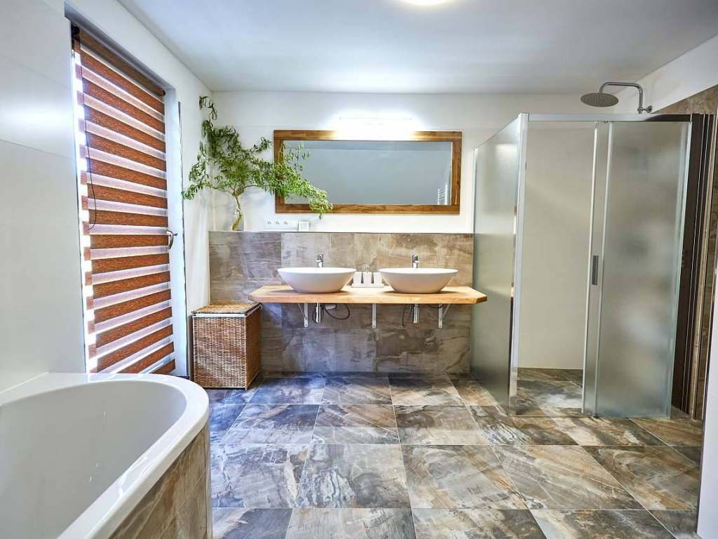 1 apartmán 8-lůžkový, 3 ložnice - Sociální zařízení: sprchový kout, vana