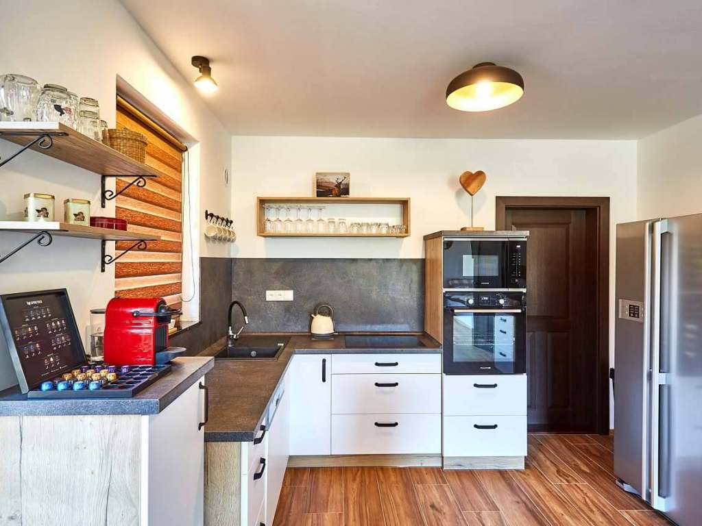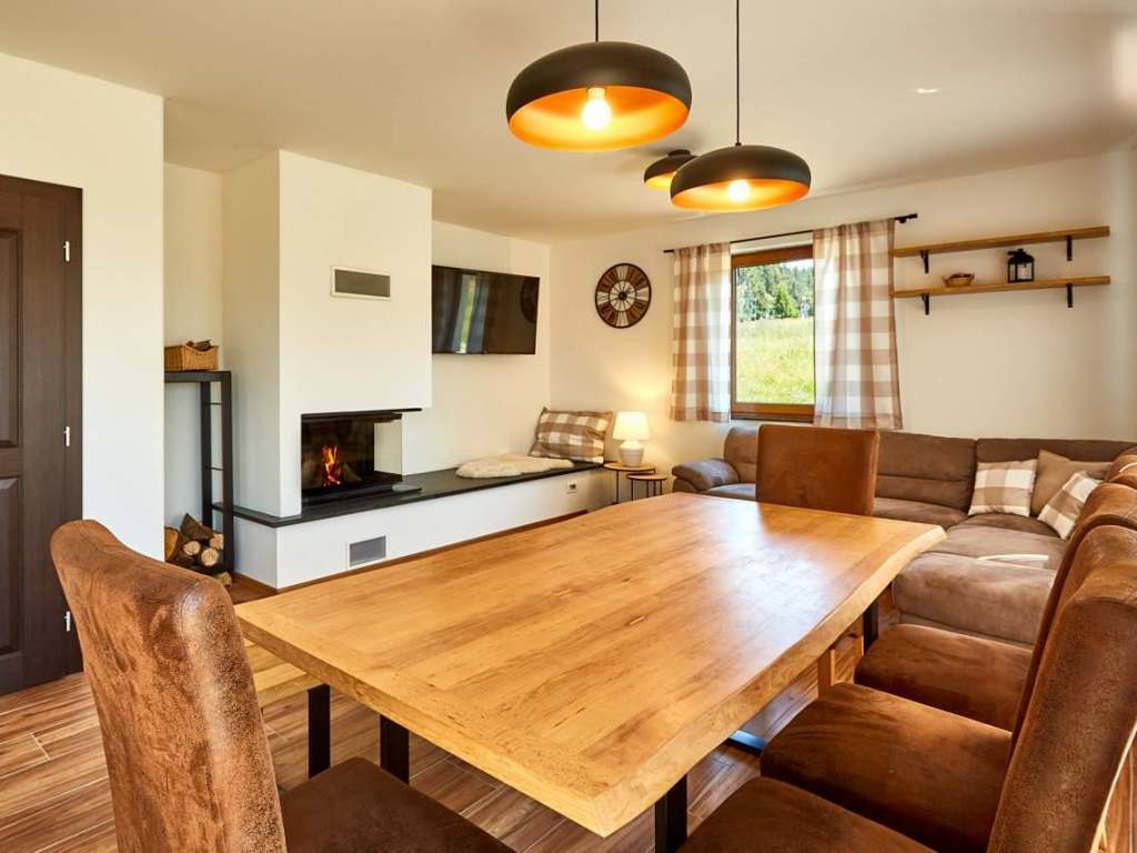 Kompletně vybavené kuchyně (2x), TV, WiFi, terasa, krb a krbová kamna.