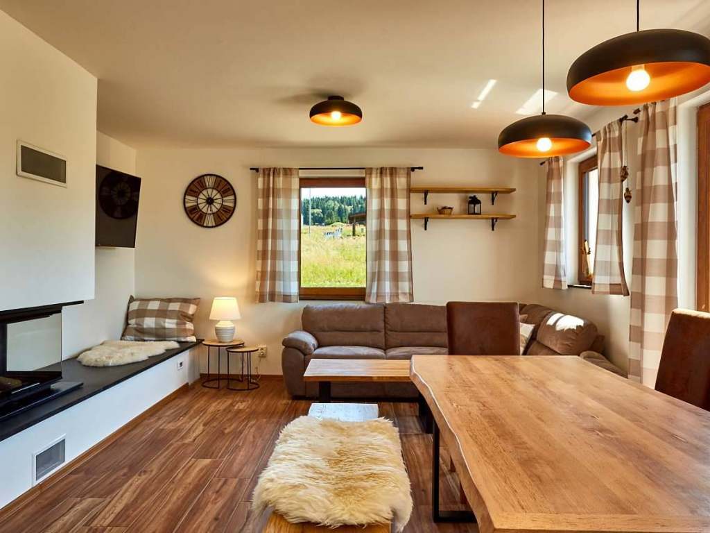Celý dům je moderně a vkusně zařízen do posledního detailu. Nabízí veškerý komfort včetně terasy, místa pro grilování, ohniště, či vnitřního krbu s možností relaxace na vyhřívaném kameni.