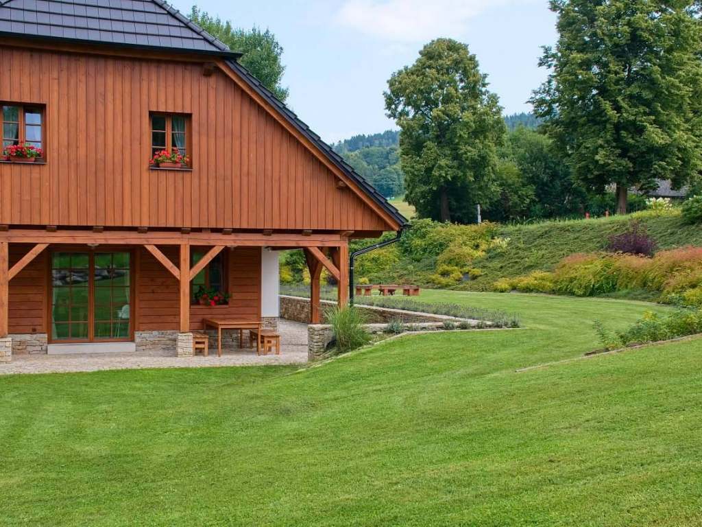 V bezprostřední blízkosti se nachází další objekt, v němž naleznete posezení s možností grilování, k dispozici je i venkovní ohniště. Dále je zde zastřešená herna, ve které je pingpongový stůl, stolní fotbal a elektronické šipky. Součástí budovy je uzamykatelný, zabezpečený prostor pro kola, lyže, kočárky a další vybavení, ….. Prostorná zahrada a přilehlé louky poskytnou také možnost dalšího využití, možnost sáňkování či bobování přímo u chalupy. Na zahradě je k dispozici dětské hřiště.