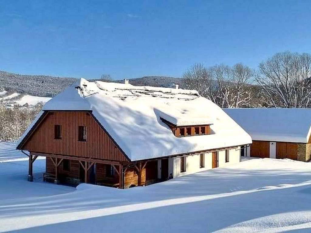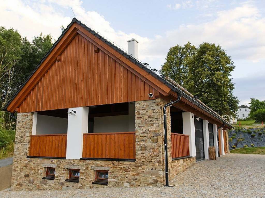 V bezprostřední blízkosti se nachází další objekt, v němž naleznete posezení s možností grilování, k dispozici je i venkovní ohniště. Dále je zde zastřešená herna, ve které je pingpongový stůl, stolní fotbal a elektronické šipky. Součástí budovy je uzamykatelný, zabezpečený prostor pro kola, lyže, kočárky, ….. Prostorná zahrada a přilehlé louky poskytnou také možnost dalšího využití, možnost sáňkování či bobování přímo u chalupy. Na zahradě je dětské hřiště, houpačky a skluzavka. K dispozici jsou fotbalové branky.